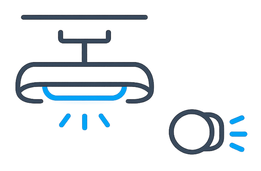 Compact top lighting for AC panels and roof corners.